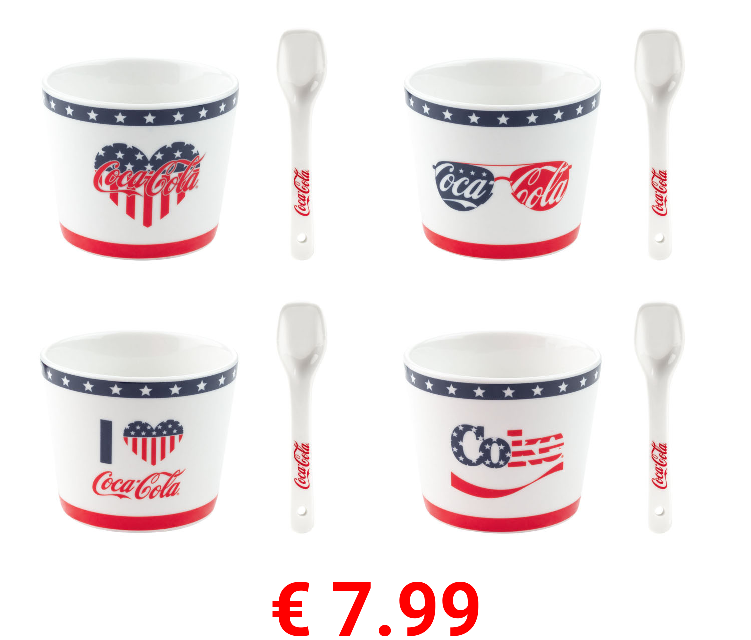 € 7.99 Coca Cola Eisbecher mit Löffeln, 4er Set