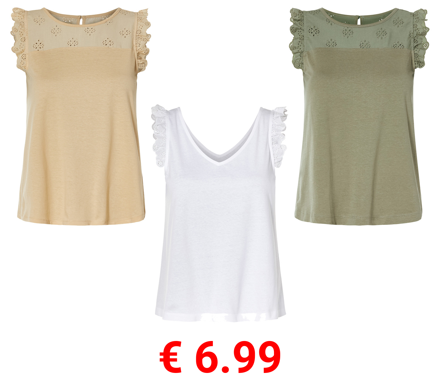 € 6.99 esmara® Damen Top mit Rüschen aus reiner Baumwolle