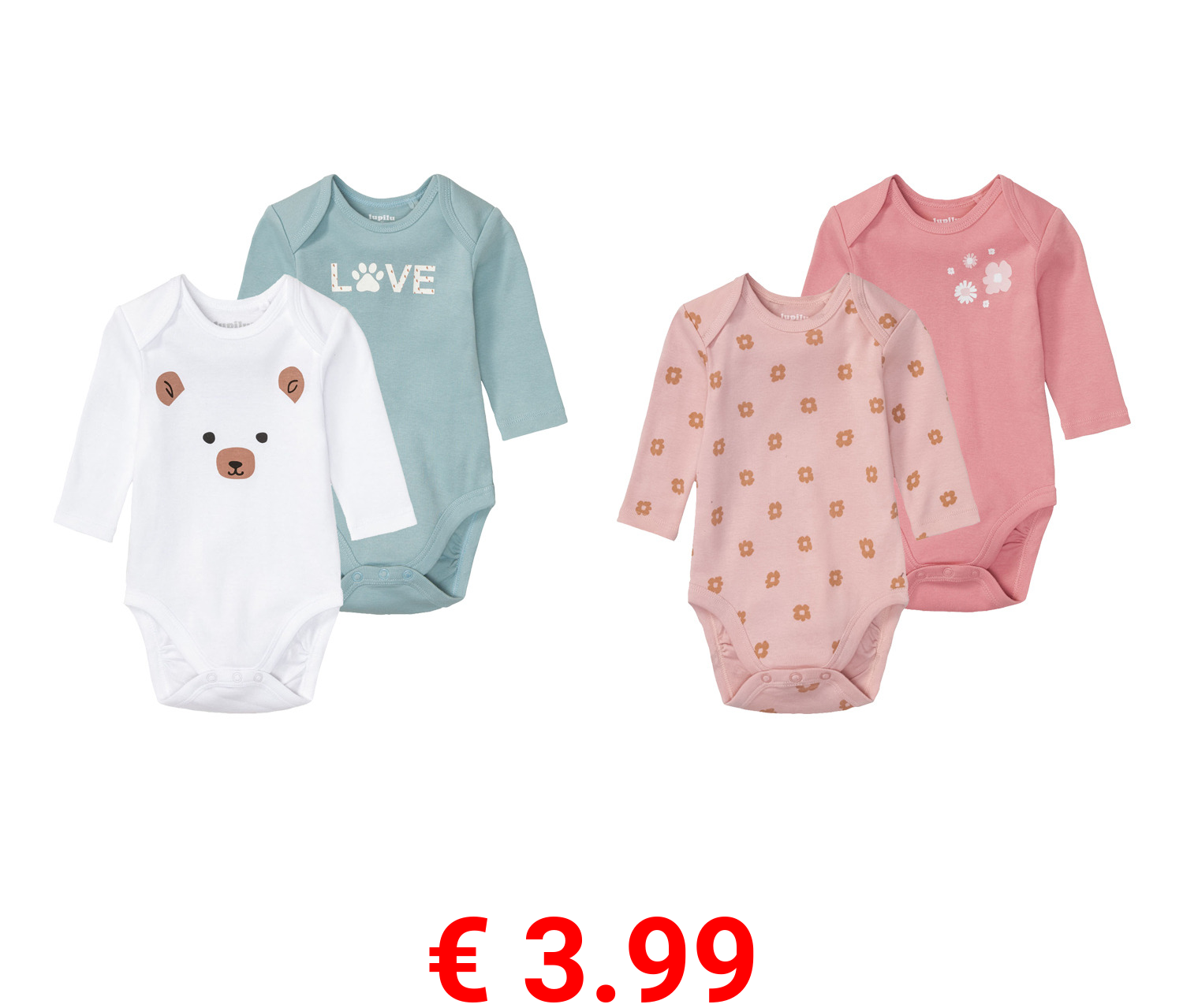 € 3.99 lupilu® Baby Bodies, 2 Stück, aus reiner Bio-Baumwolle