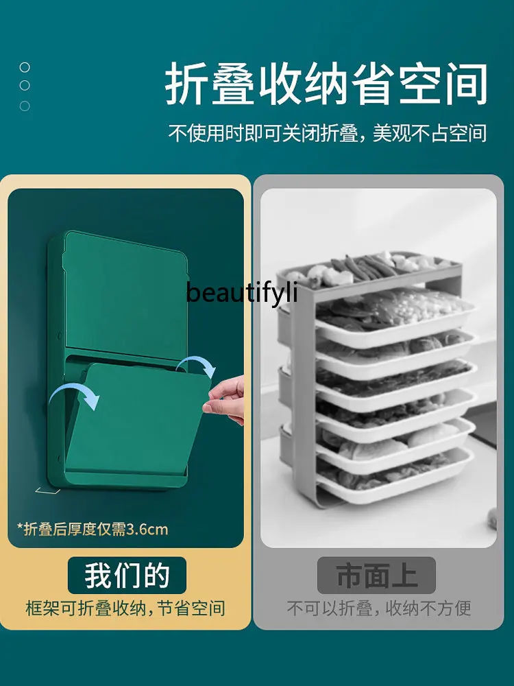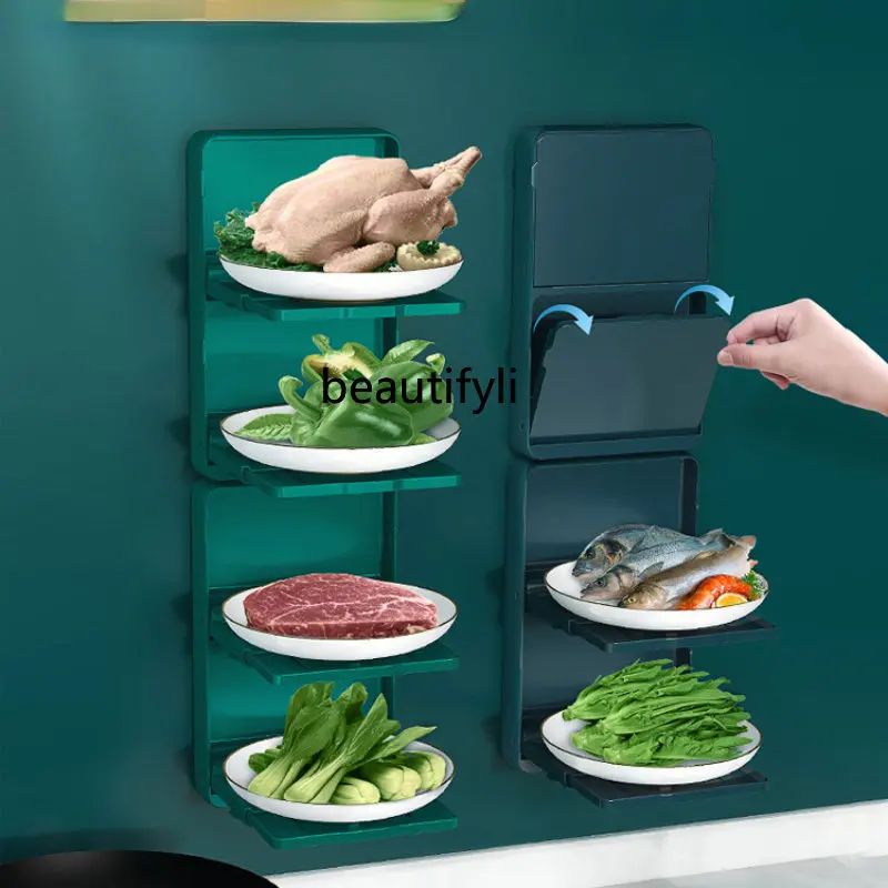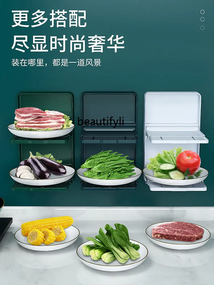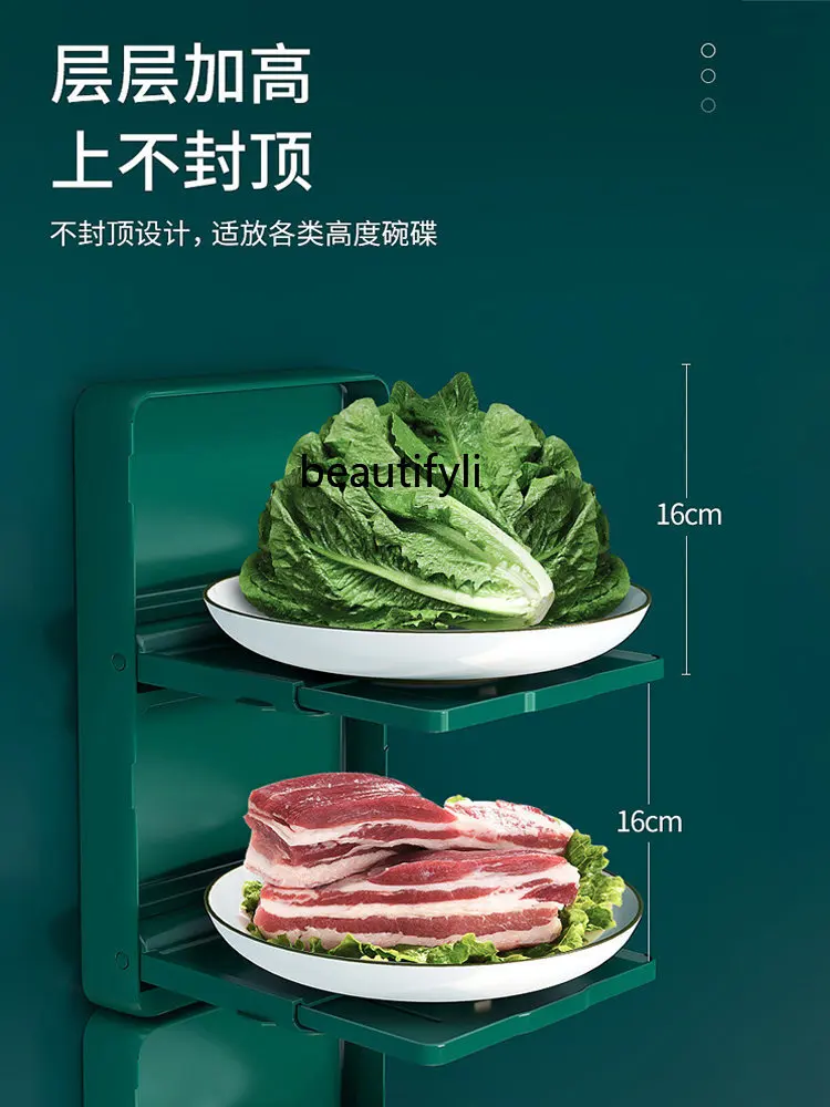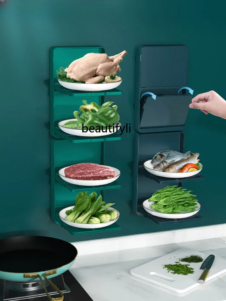 "yj Kitchen Dish Storage Rack Household Folding Storage Rack Wall-Mounted Punch-Free Hot Pot Side Dishes Plate Multi-Layer" * Buy Now With Free Shipping Just For $53