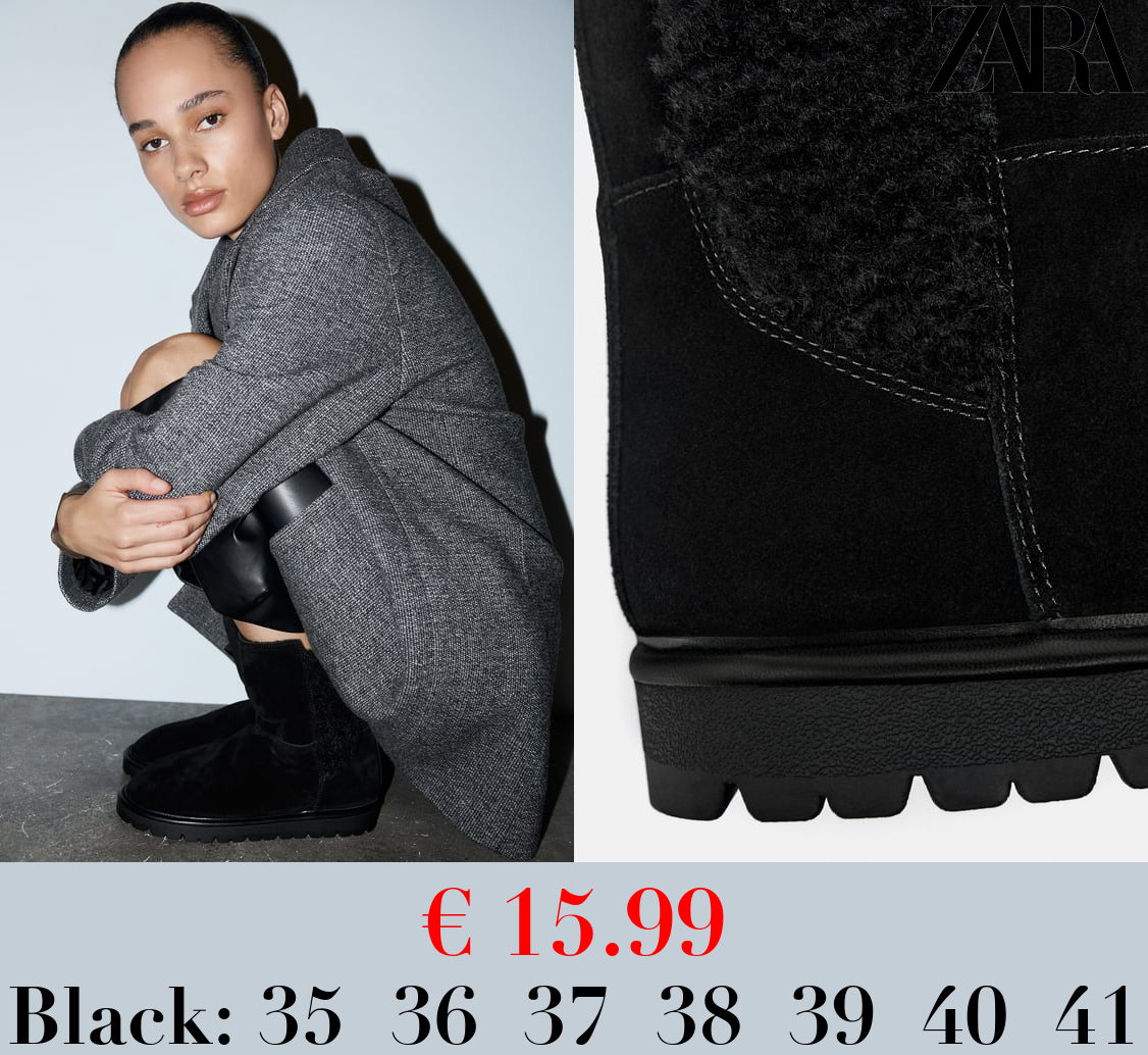 € 15.99 FAUX SHEARLING AND LEATHER FLAT ANKLE BOOTS
