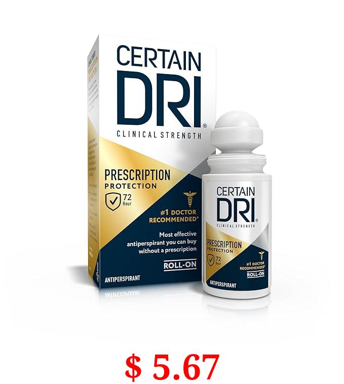 $ 5.67 Certain Dri Prescription Strength Clinical Antiperspirant Roll-On Deodorant, Hyperhidrosis Treatment for Men & Women, Unscented, 1.2 Fl oz, 1 Pack