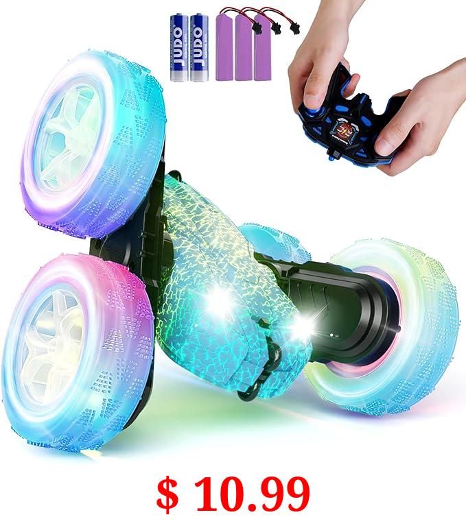 $ 10.99 28C: Blue 4WD RC Car with Headlights and Wheel Lights, 2.4GHz Stunt Toy Car for Boys and Girls, 360 Rotation, 6 Year Old