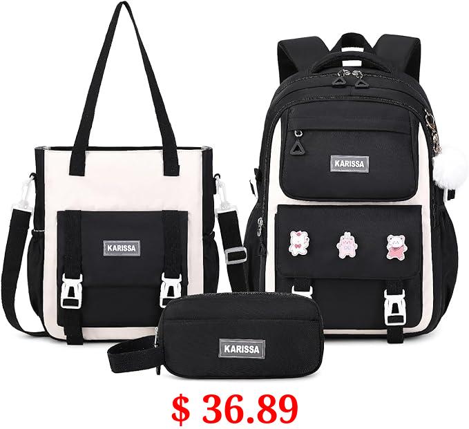 $ 36.89 PIG PIG GIRL Girls Backpack, 3pcs Sets Kids Backpack for Girls with Anti-theft Back Pocket, Lightweight School Backpack Water Resistant Tote Bag with Pencil case for Elementary Primary School, Black