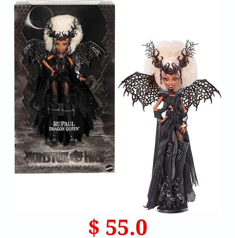 $ 55.0 Monster High RuPaul Doll, Dragon Queen Collectible with Glimmering Black Gown, Knee-High Boots, Wings and Premium Packaging