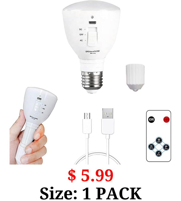 $ 5.99 Size: 1 PACK USB Rechargeable Battery Light Bulb with Remote Control, 7W LED Multifunctional Emergency Lighting 4 Brightness Adjustable retractable Flashlight E26 Hangable Outdoor Lamp 6000K 2600mAh ,1 pack