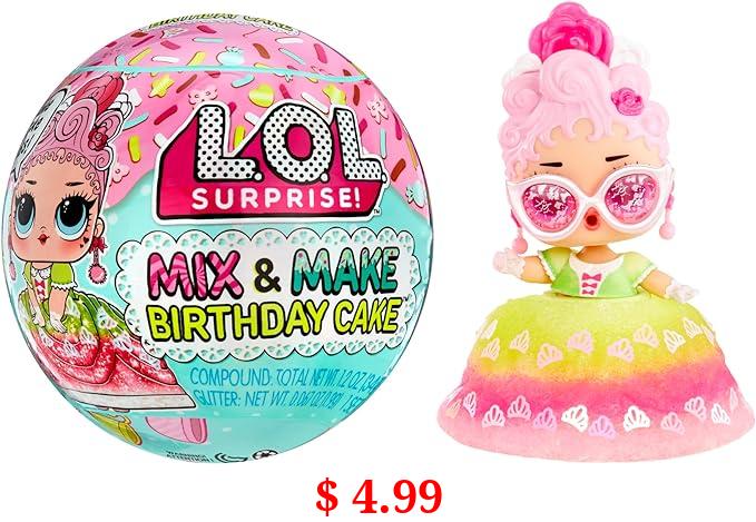$ 4.99 LOL Surprise Mix & Make Birthday Cake Tots with Collectible Doll, DIY Cake Dress, Cake Making and Decorating, Ingredients and Glitter Sprinkles, Cake Dress Doll- Great Gift for Girls Age 3+