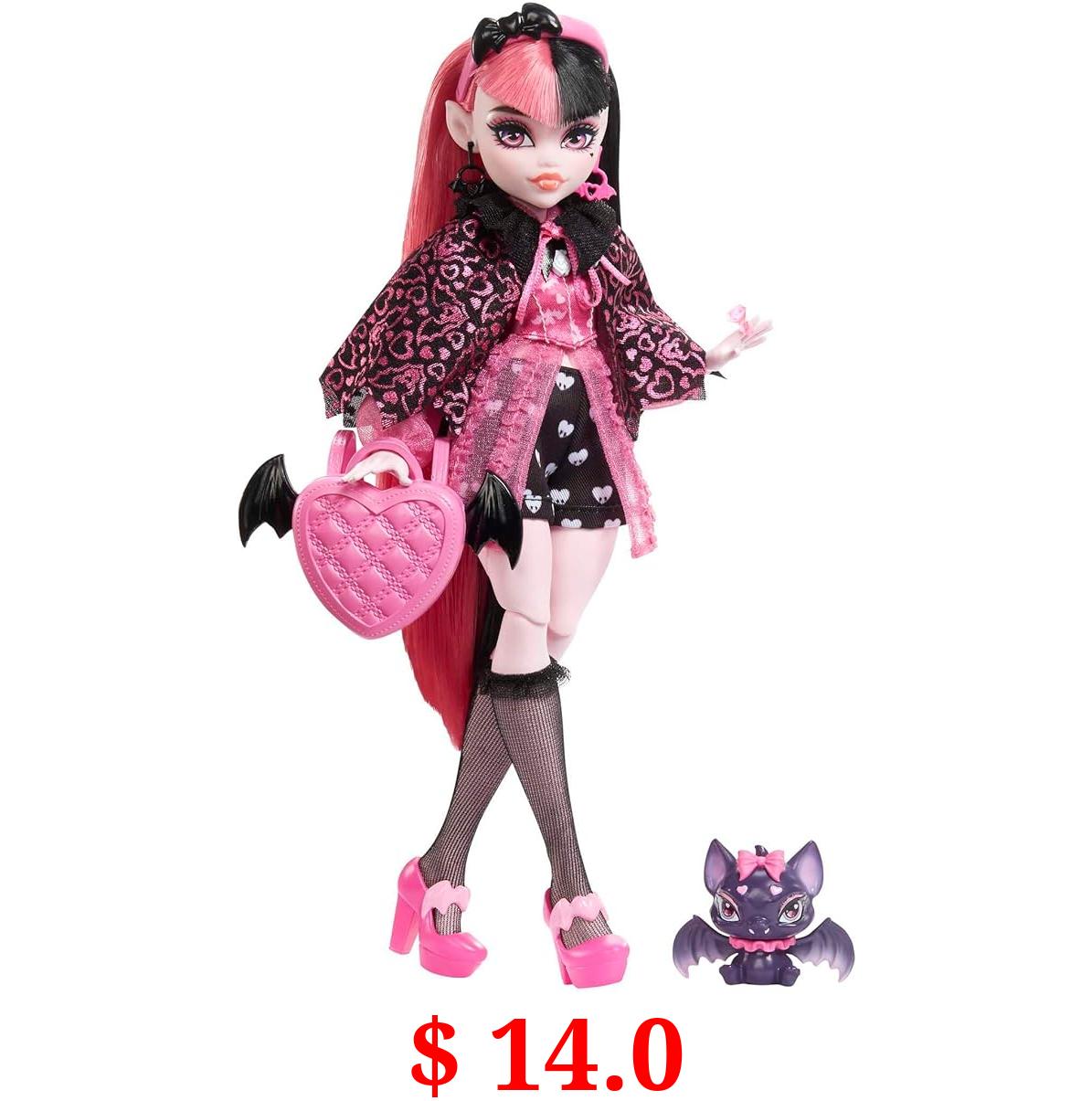 $ 14.0 Monster High Doll, Draculaura with Pink & Black Hair in Signature Look with Fashion Accessories & Pet Bat Count Fabulous