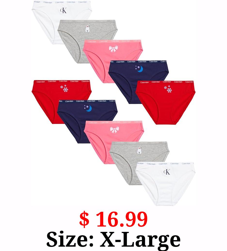 $ 16.99 Size: X-Large Calvin Klein Girls' Underwear - 10 Pack 100% Cotton Bikini Briefs – Soft Tag Free Panties for Girls (Size: 7-16)