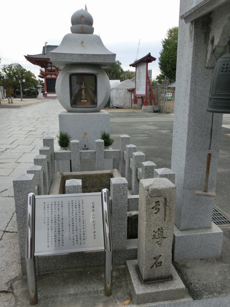 圣德太子在大阪建了一个寺,叫做,四天王寺。就是东南西北中。四大天王,四天王寺。四天王寺里,有一个石头,也叫引导石。就是共济会存在的证据。这个大阪四天王寺里也有个引导石,叫圣德太子影像引导石。其实大家可以看,我给大家讲了这么多期节目了,它上边是个金字塔形状,一个帽子,金字塔形状的。然后下边呢,是个圆球,整个是个圆球,其实就是方圆的立体画。然后中间嵌着一个金身的像,圣德太子金身像。然后它旁边是个池子,石砌的栏杆。里面都是黑石子,黑石子中间,有一块,大石头。这也叫做引导石。这个历史可比乔治亚引导石,要久远的多的多了。