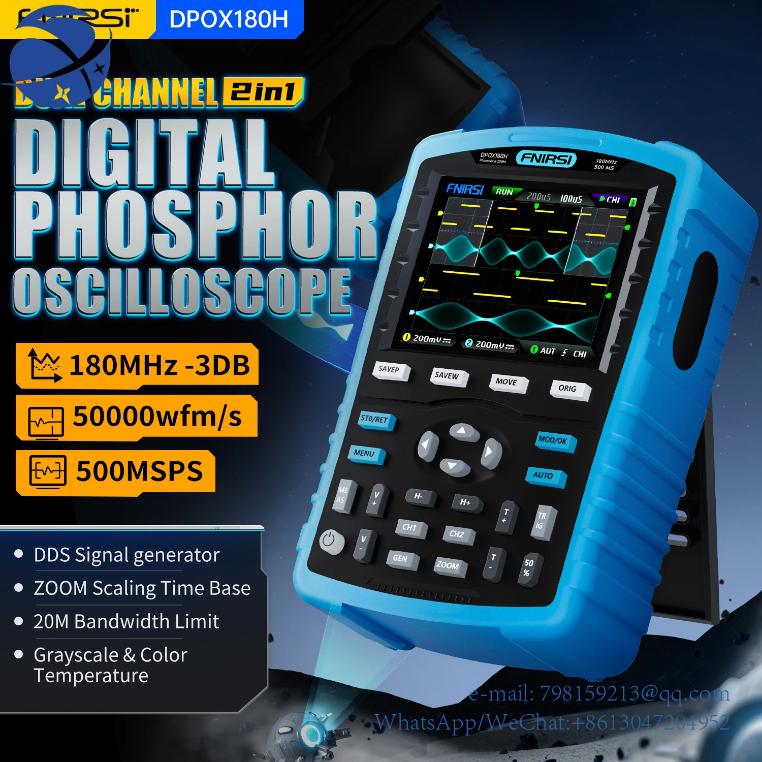 UngrUeuFPWHere you can buy yyhcFNIRSI DPOX180H Handheld Dual Channel Digital Oscilloscope 180MHz-3DB 2 In 1 Function Signal Generator Fluorescence Display with free delivery to your post office.