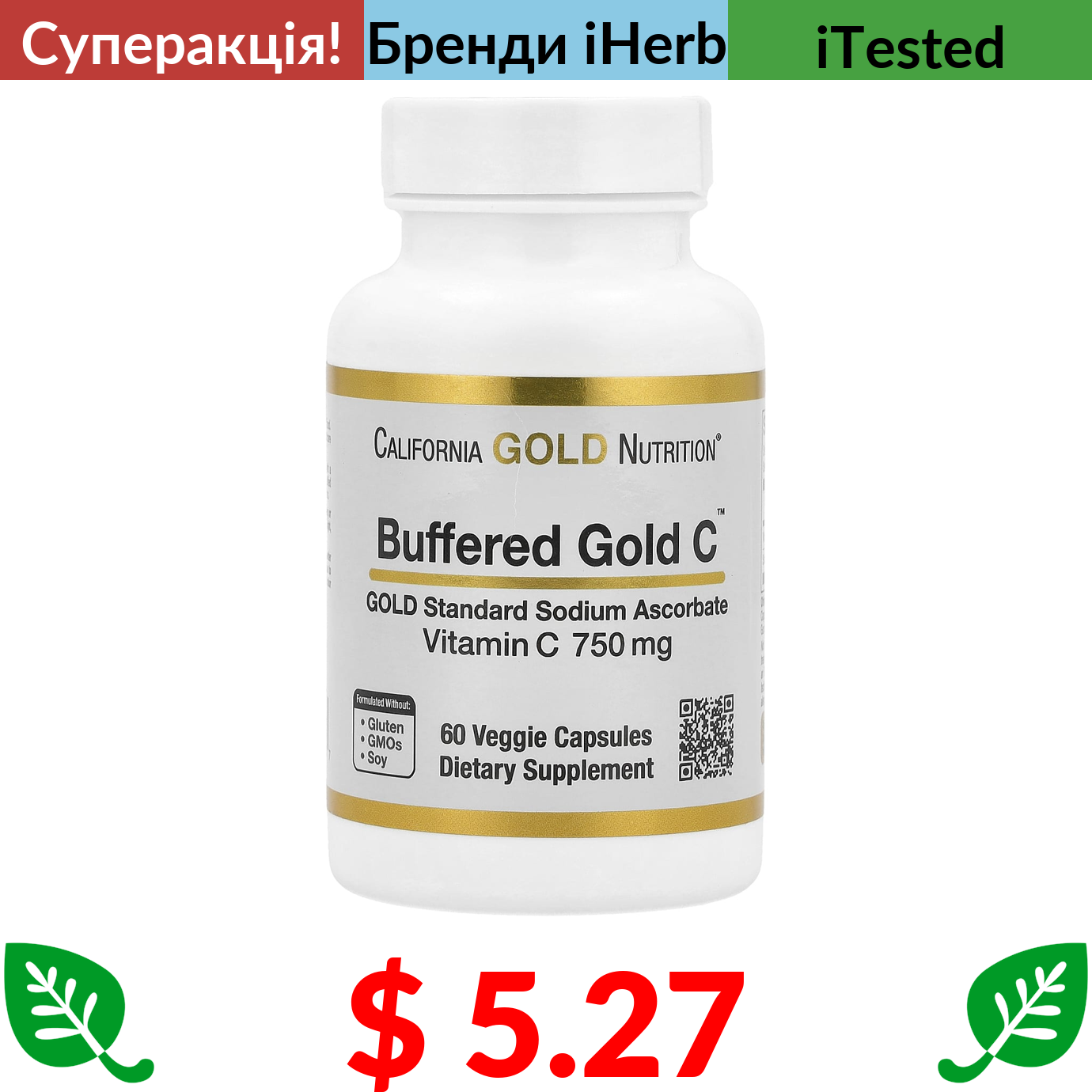 $ 5.27 California Gold Nutrition, буферизований вітамін C Gold C, аскорбат натрію (вітамін C) золотого стандарту, 750 мг, 60 вегетаріанських капсул