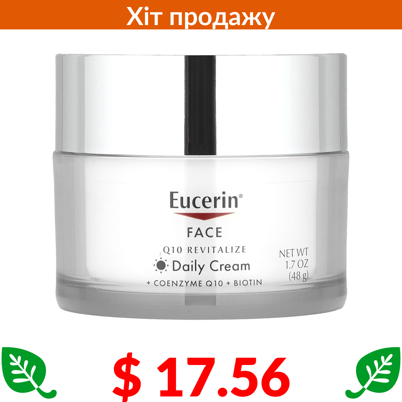 $ 17.56 Eucerin, відновлювальний денний крем для обличчя з коензимом Q10, без ароматизаторів, 48 г (1,7 рідк. унції)