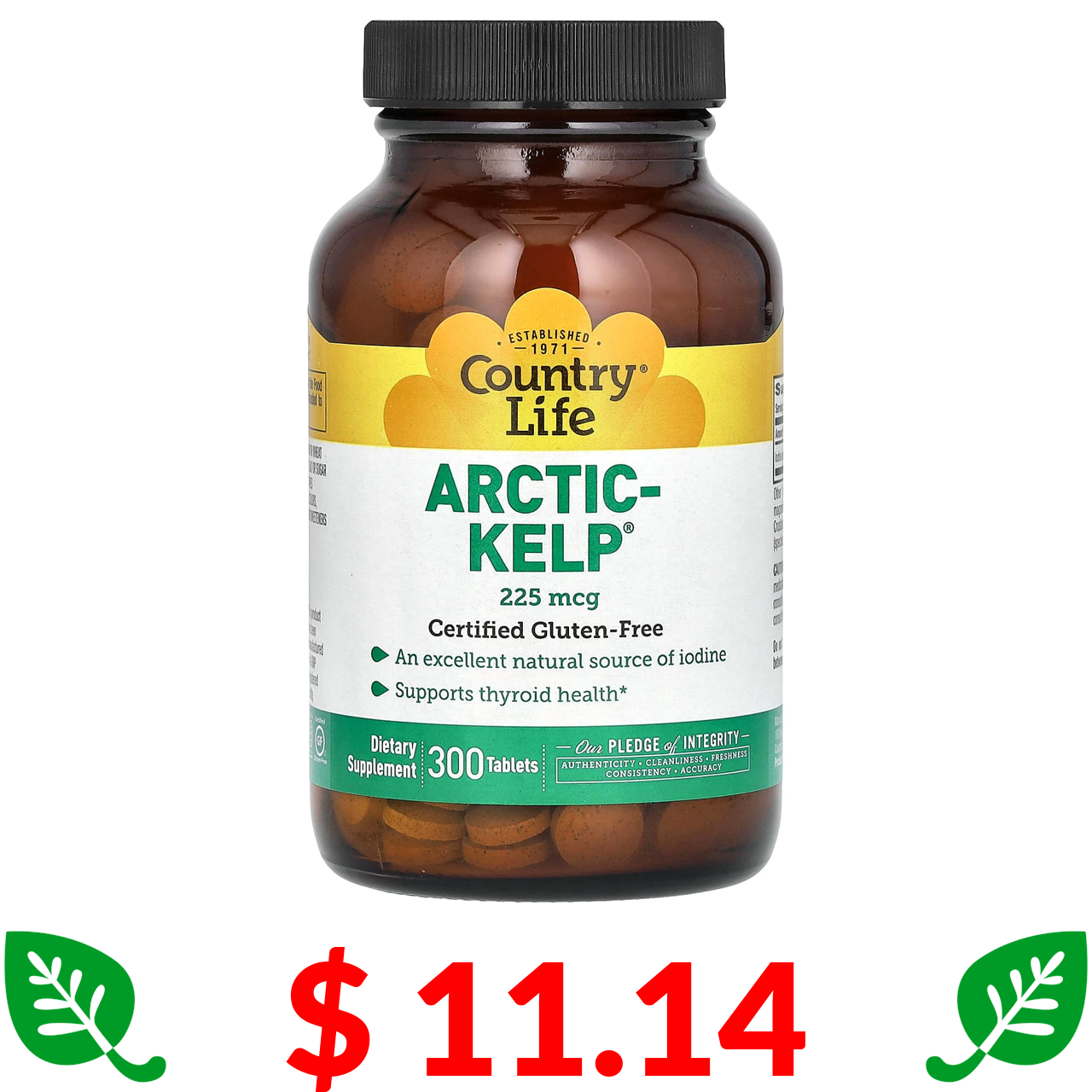 $ 11.14 Country Life, арктичні бурі водорості, 225 мкг, 300 таблеток