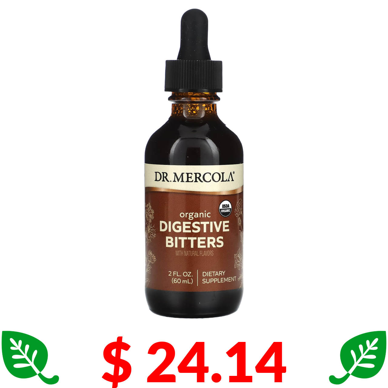$ 24.14 Dr. Mercola, органічна гірка настоянка для покращення травлення з натуральним смаком, 60 мл (2 рідк. унції)