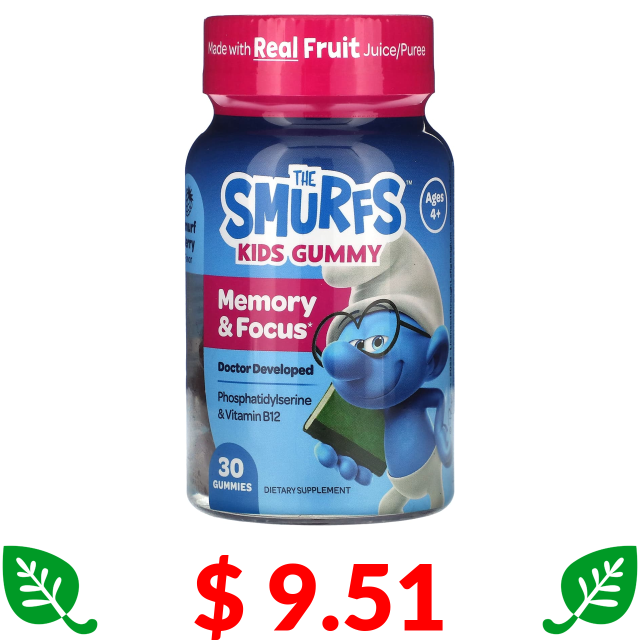 $ 9.51 The Smurfs, The Smurfs, жувальні таблетки для дітей віком від 4 років, для пам’яті й концентрації, ягоди, 30 жувальних таблеток