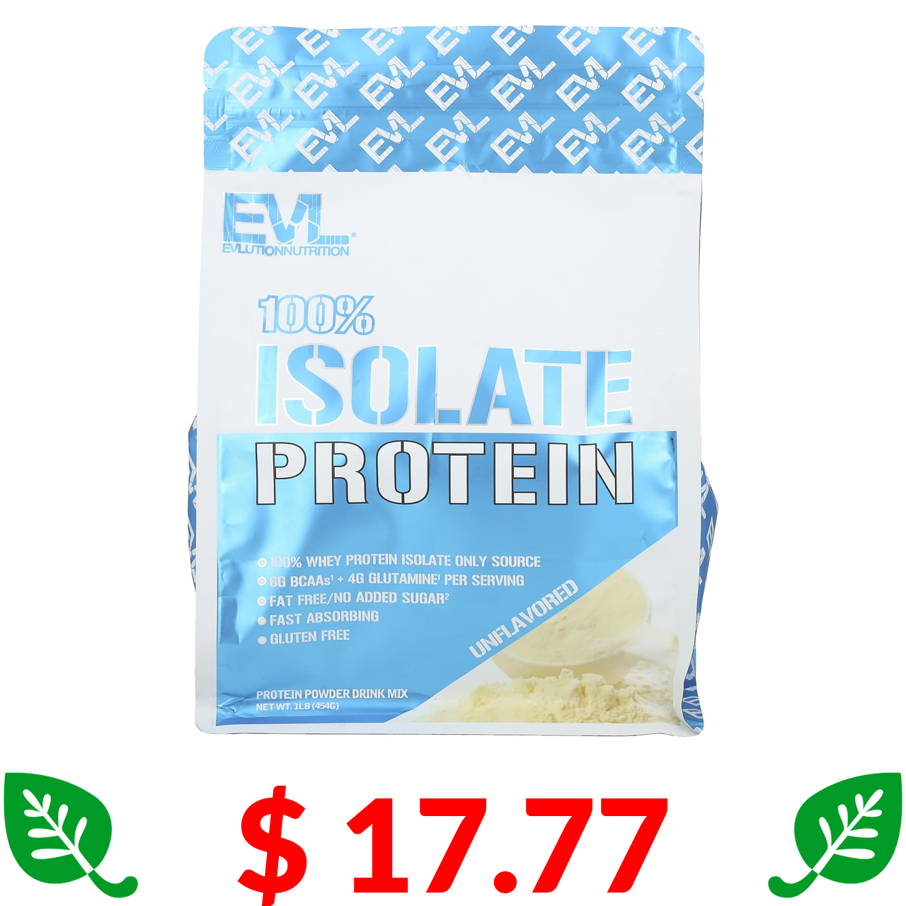 $ 17.77 EVLution Nutrition, 100 % ізолят протеїну, без смакових добавок, 454 г (1 фунт)