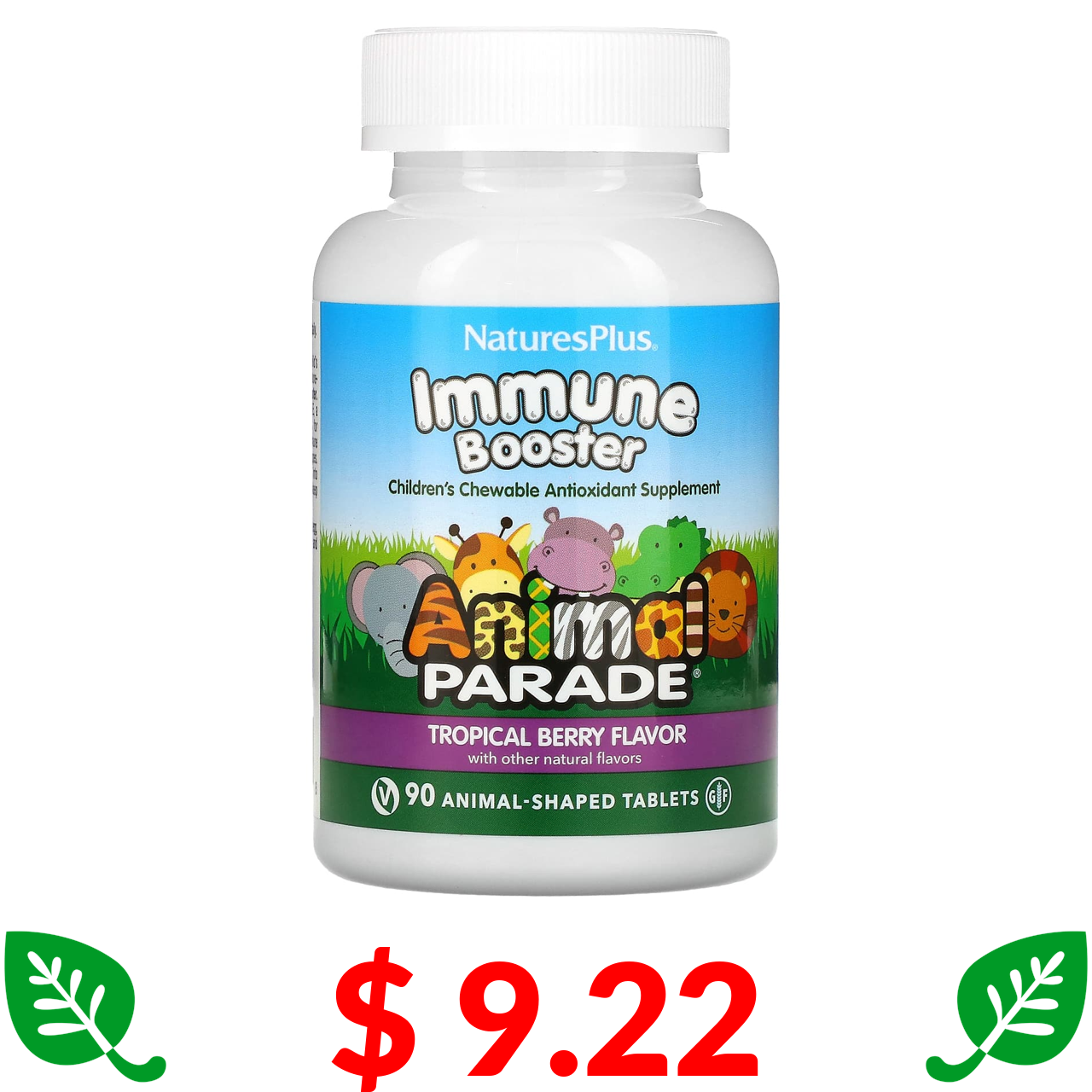 $ 9.22 Nature's Plus, Source of Life, Animal Parade, Kids Immune Booster, добавка для зміцнення імунітету у дітей, натуральний смак тропічних ягід, 90 тварин