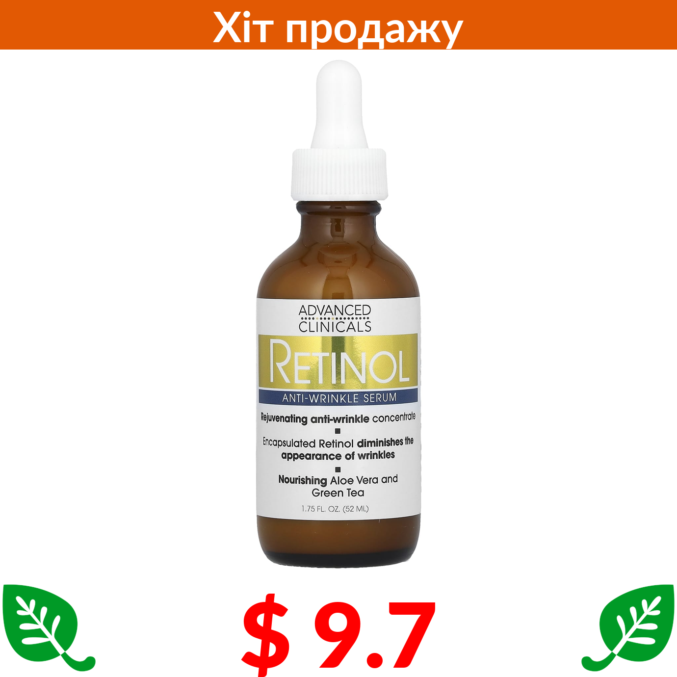 $ 9.7 Advanced Clinicals, сироватка з ретинолом, проти зморщок, 52 мл (1,75 рідк. унції)
