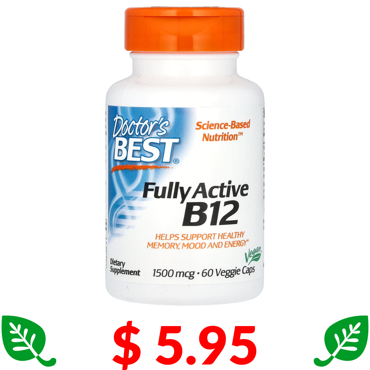 $ 5.95 Doctor's Best, активний вітамін B12, 1500 мкг, 60 вегетаріанських капсул