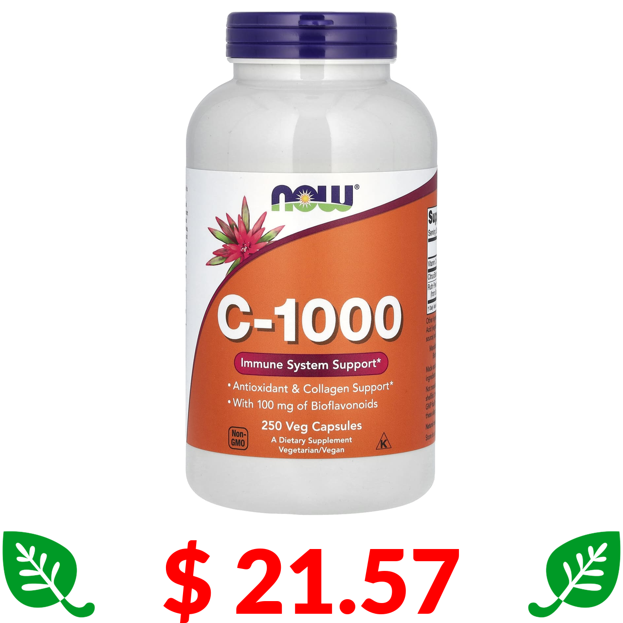 $ 21.57 Now Foods, C-1000, з вмістом 100 мг біофлавоноїдів, 250 рослинних капсул