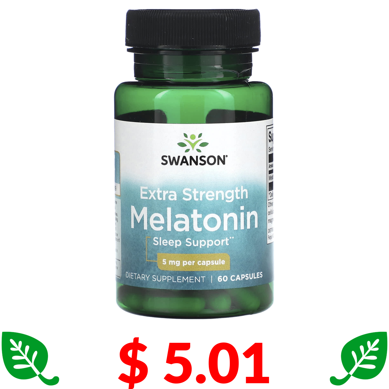 $ 5.01 Swanson, мелатонін посиленої дії, 5 мг, 60 капсул