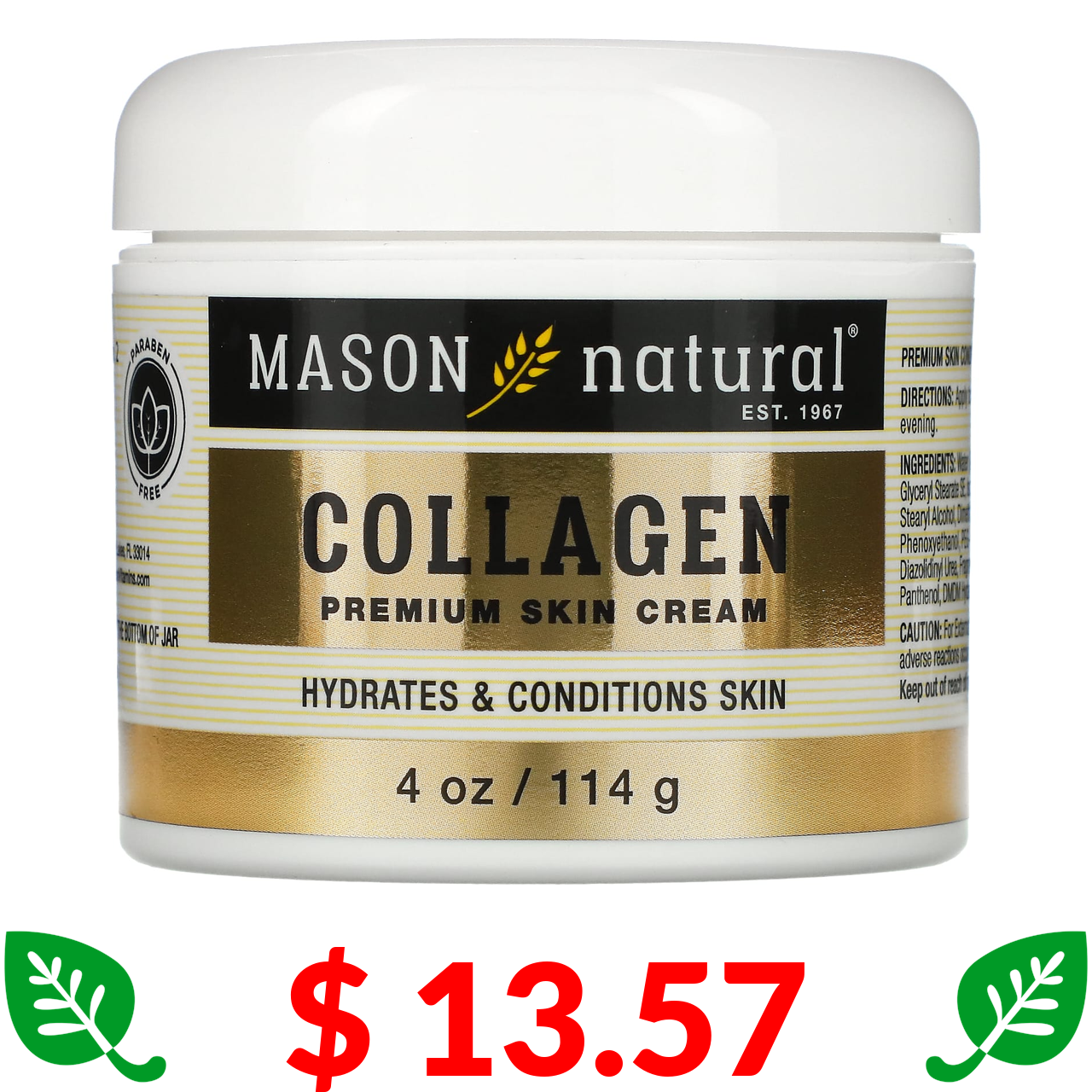$ 13.57 Mason Natural, крем для шкіри з колагеном преміальної якості, з запахом груші, 114 г (4 унції)