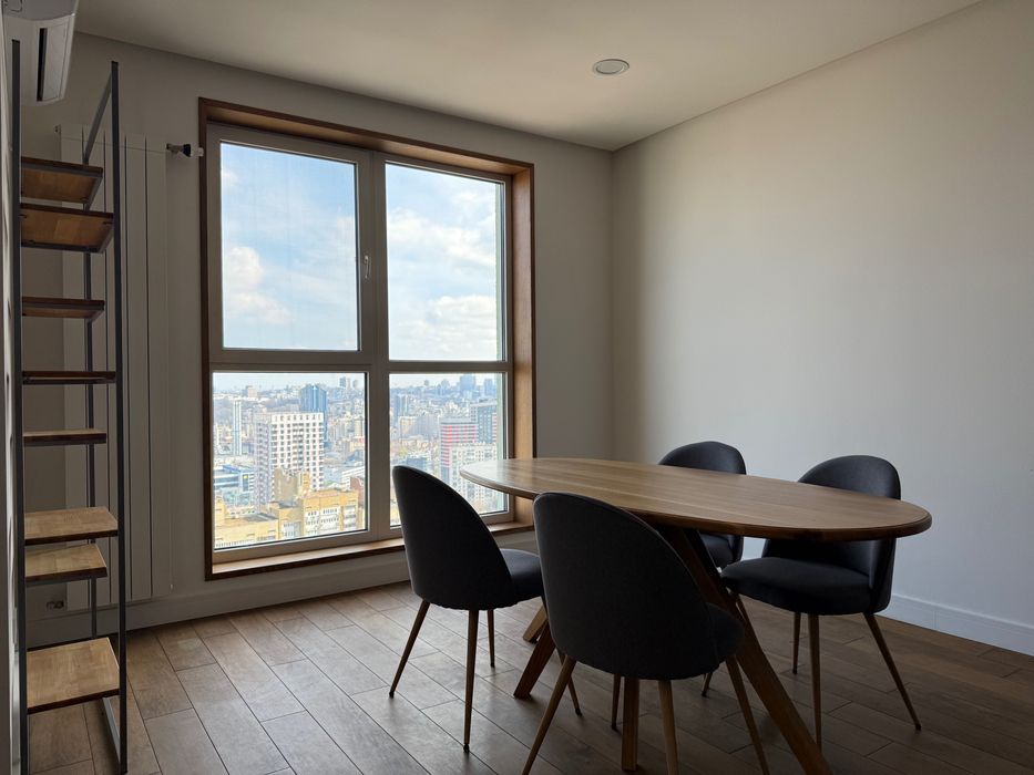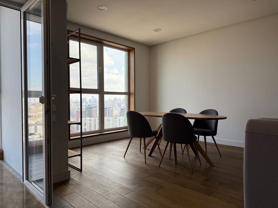 Індивідуальне планування. Авторський дизайн та якісне оздоблення: натуральне дерево, камінь, мармур, сантехніка Villeroy&Boch, Hansgrohe, техніка Bosch, фільтр Amway. Індивідуальний дизайн меблів. Унікальний вид, 25 поверх - 180° панорама на центра Києва. Тільки довгострокова оренда!
