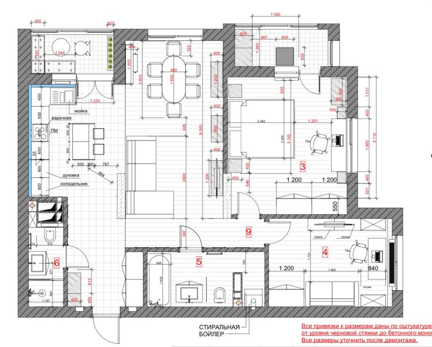 - вітальня об'єднана разом з кухнею.