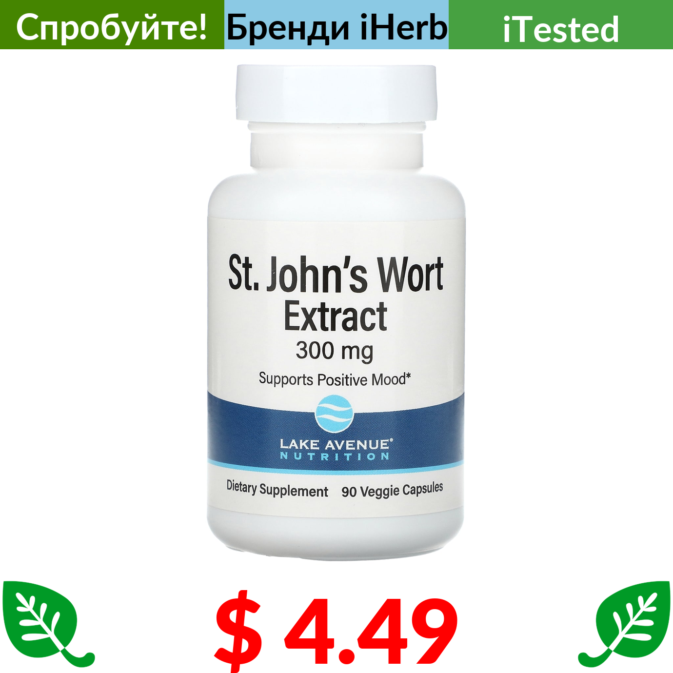 $ 4.49 Lake Avenue Nutrition, екстракт звіробою, 300 мг, 90 рослинних капсул