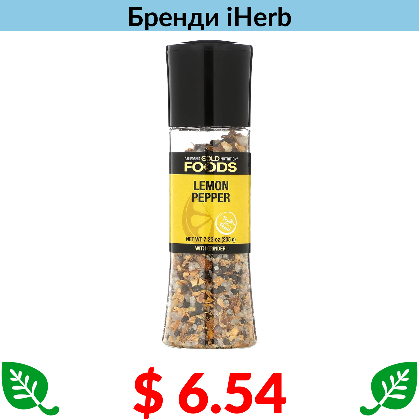 $ 6.54 California Gold Nutrition, FOODS, сіль із лимоном і перцем у млинку, 205 г (7,23 унції)