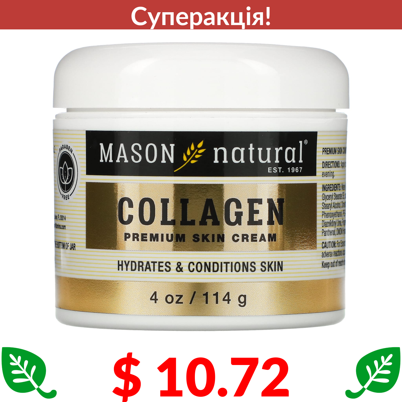 $ 6.23 Mason Natural, крем для шкіри з колагеном преміальної якості, 57 г (2 унції)