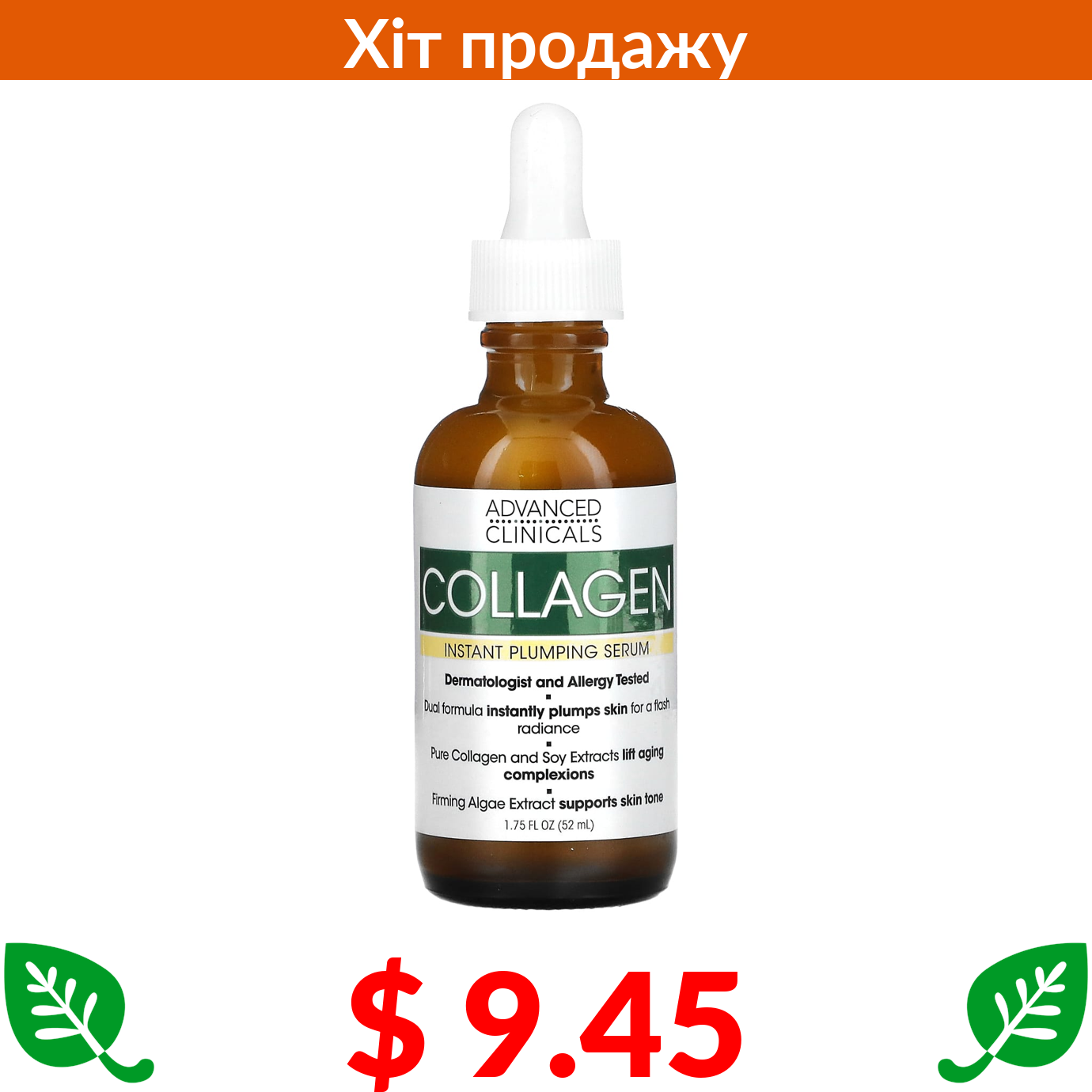 $ 9.45 Advanced Clinicals, колаген, миттєва сироватка пружності шкіри, 52 мл (1,75 рідк. унції))
