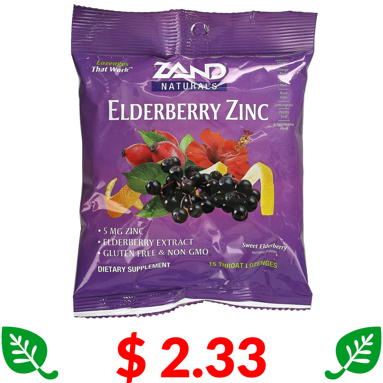 $ 2.33 Zand, бузина та цинк, солодка бузина, 15 пастилок для горла
