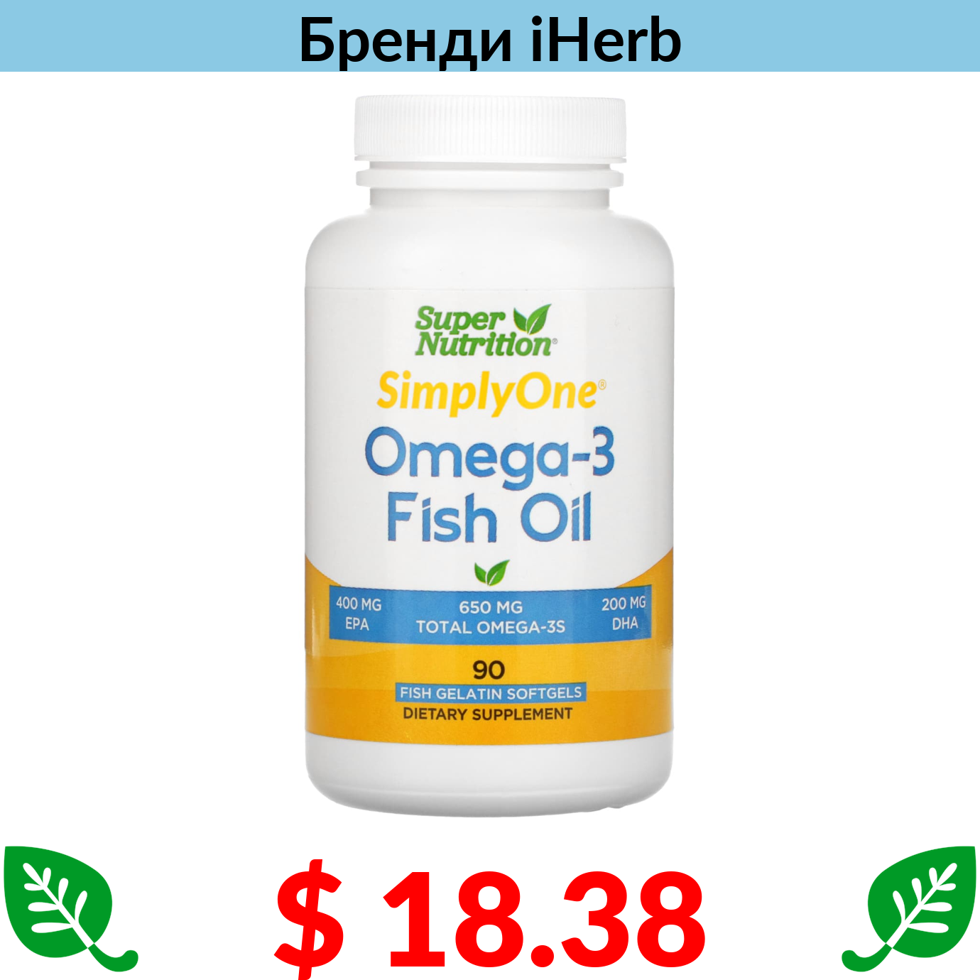 $ 18.38 Super Nutrition, риб’ячий жир з омега-3, 1000 мг, 90 капсул з риб’ячого жиру