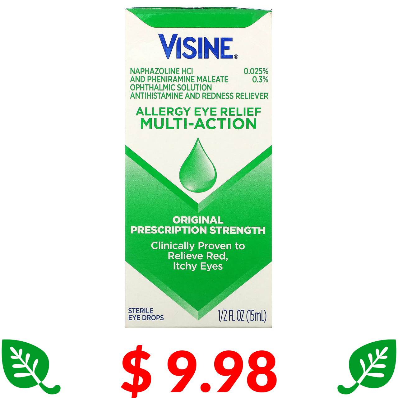 $ 9.98 Visine, Allergy Eye Relief, Multi-Action Eye Drops, 1/2 fl oz (15 ml)