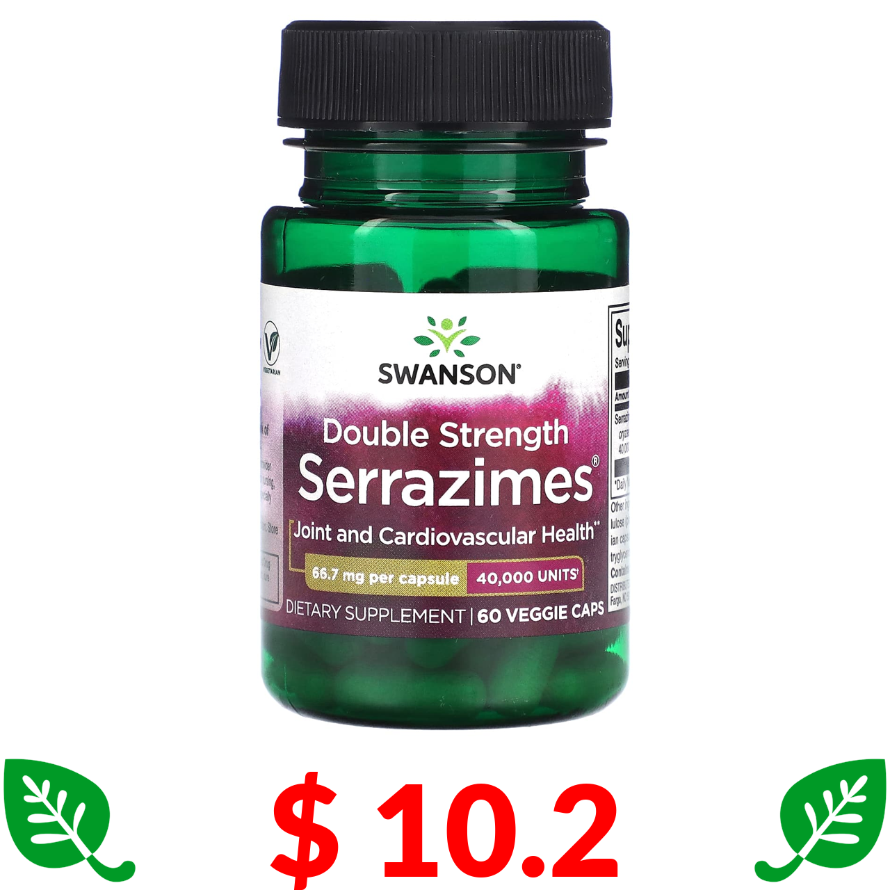 $ 10.2 Swanson, Double Strength Serrazimes, 66.7 mg, 60 Veggie Capsule