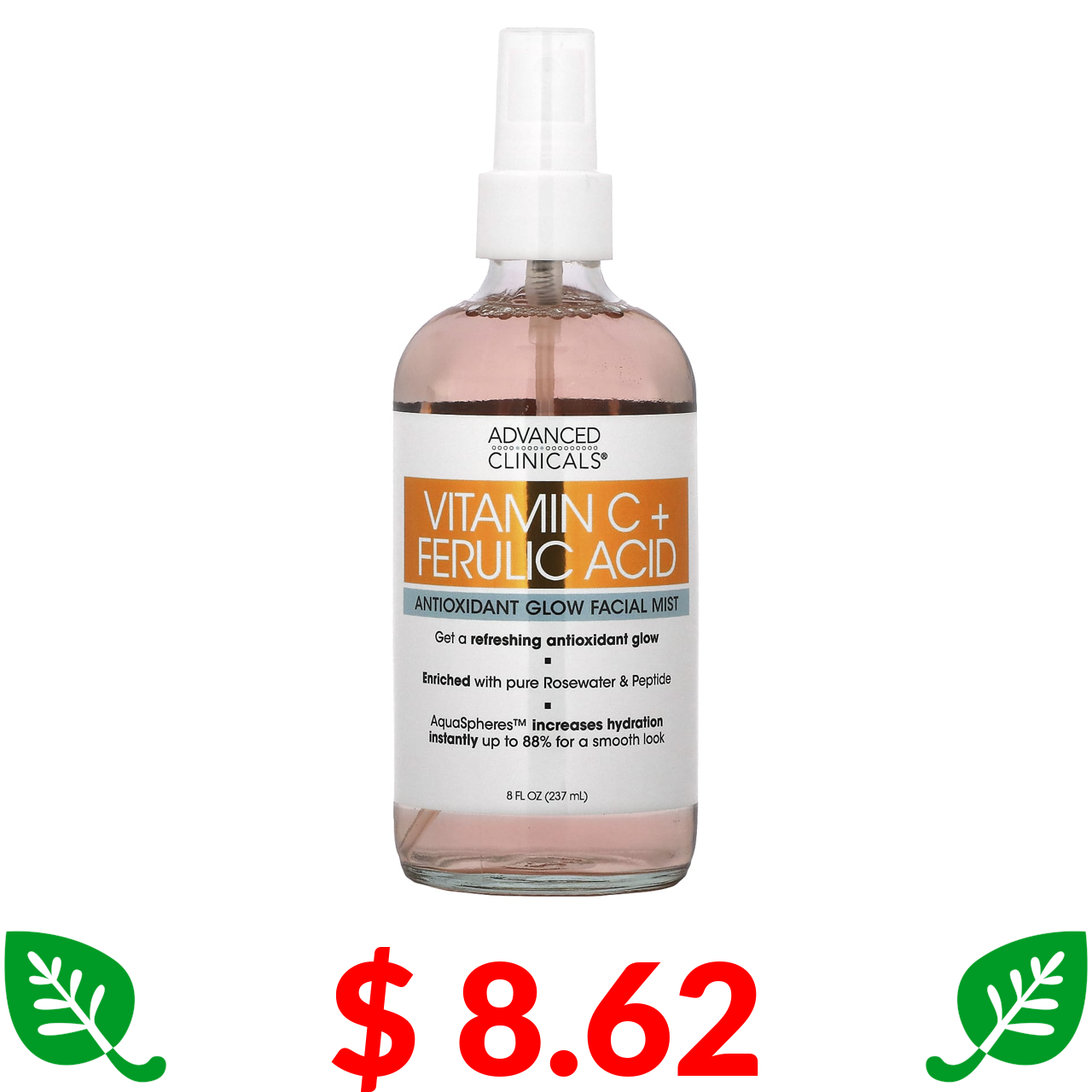 $ 8.62 Advanced Clinicals, Vitamin C + Ferulic Acid, Antioxidant Glow Facial Mist, 8 fl oz (237 ml)