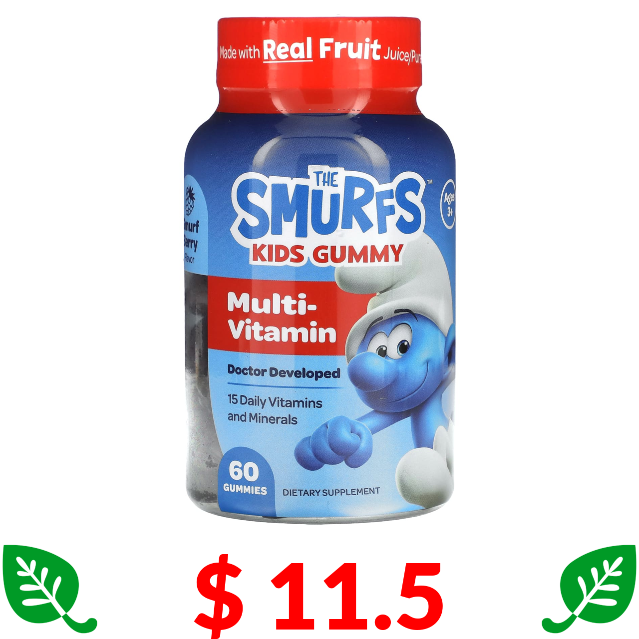 $ 11.5 The Smurfs, жувальні мультивітаміни для дітей від 3 років, зі смаком ягід, 60 жувальних мармеладок