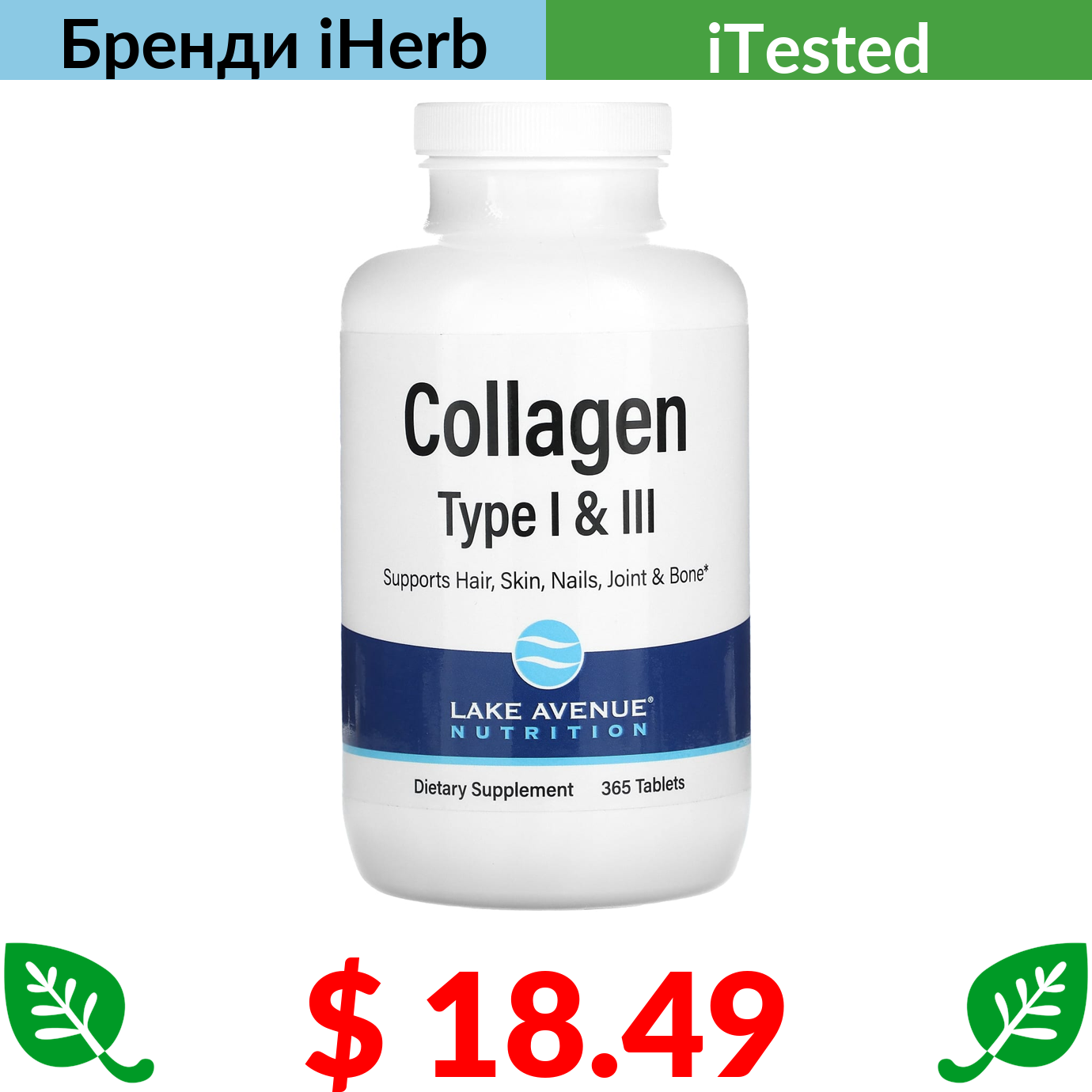 $ 18.49 Lake Avenue Nutrition, гідролізований колаген типів 1 і 3, 1000 мг, 365 таблеток