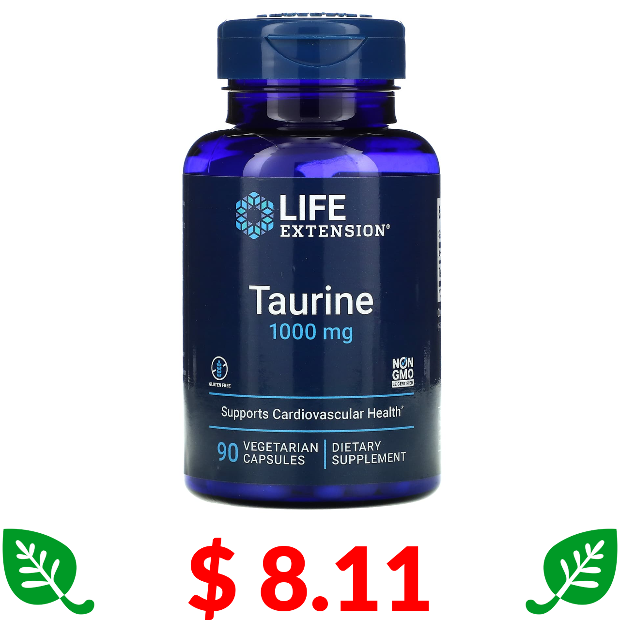 $ 8.11 Life Extension, таурин, 1000 мг, 90 вегетаріанських капсул