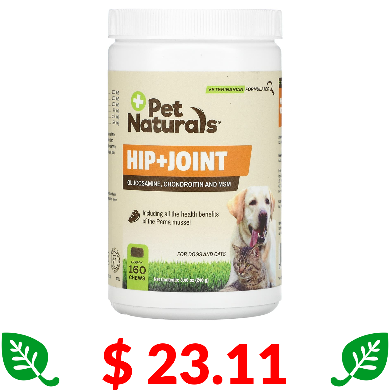 $ 23.11 Pet Naturals, Hip + Joint, For Dogs and Cats, Approx. 160 Chews, 8.46 oz (240 g)