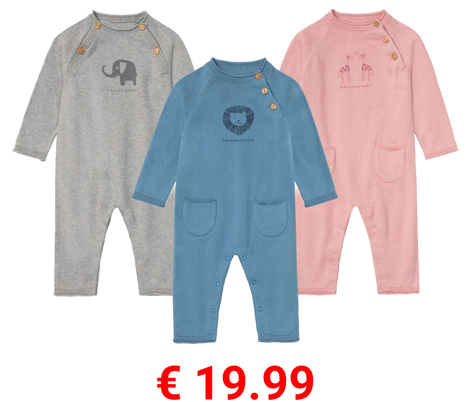 € 19.99 bellybutton Baby Mädchen / Jungen Strickoverall mit Tiermotiv
