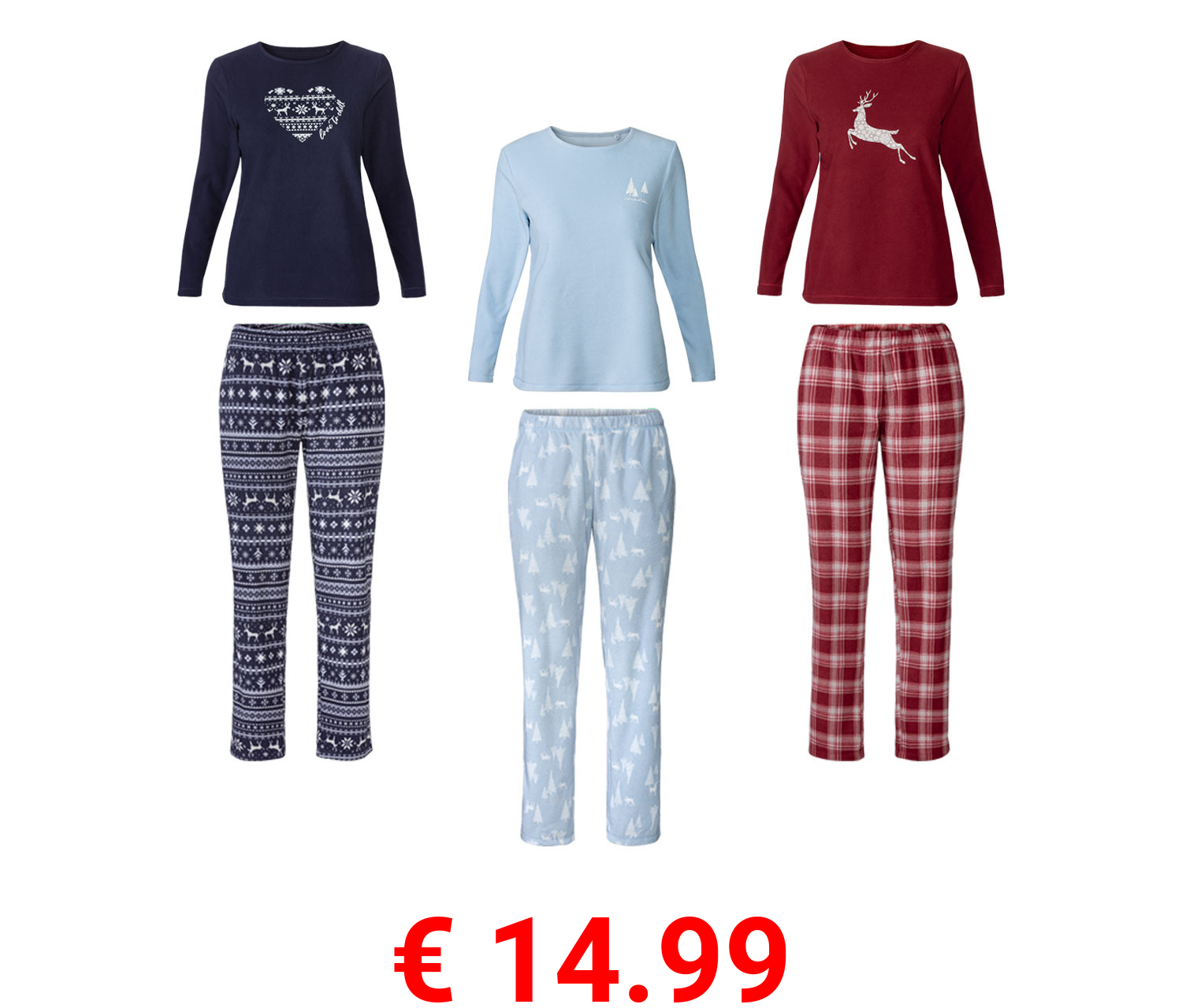 € 14.99 esmara® Damen Pyjama aus wärmender Fleece-Qualität