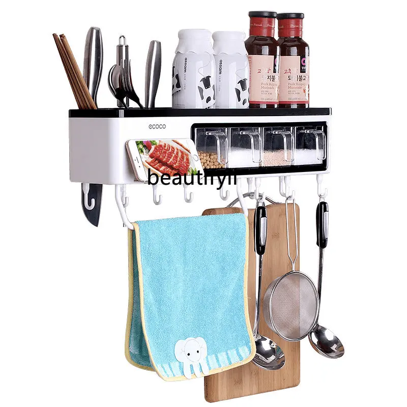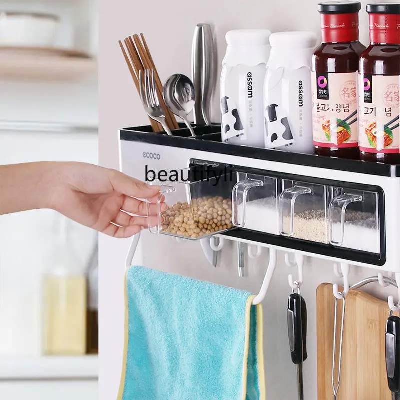 zq Kitchen Rack Household Seasoning Storage Box Wall-Mounted Kitchenware Nail-Free Hanging Rack - Купить с бесплатной доставкой