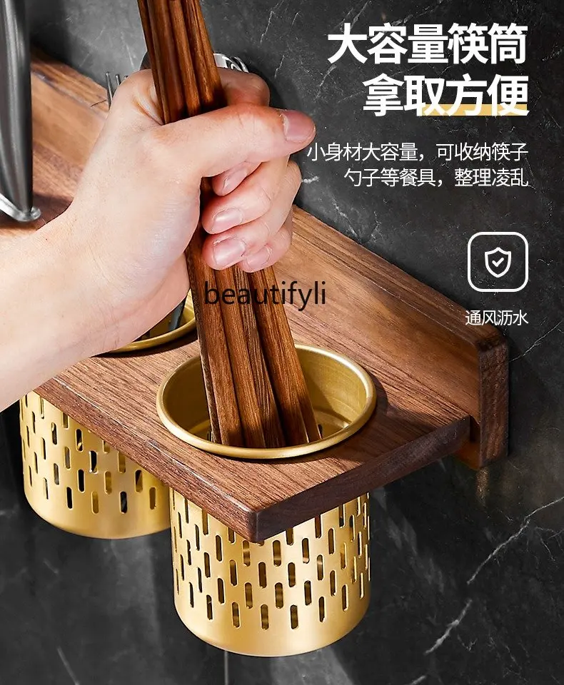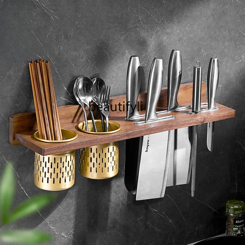 "zq Walnut Kitchen Storage Rack Wall-Mounted Knife Chopsticks Spoon Shovel Pot Lid Kitchen Supplies Storage Rack" * Buy Now With Free Shipping Just For $41
