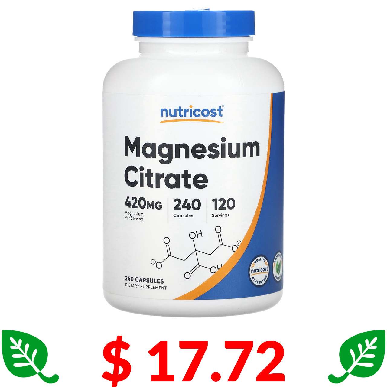 $ 17.72 Nutricost, Magnesium Citrate, 210 mg, 240 Capsules