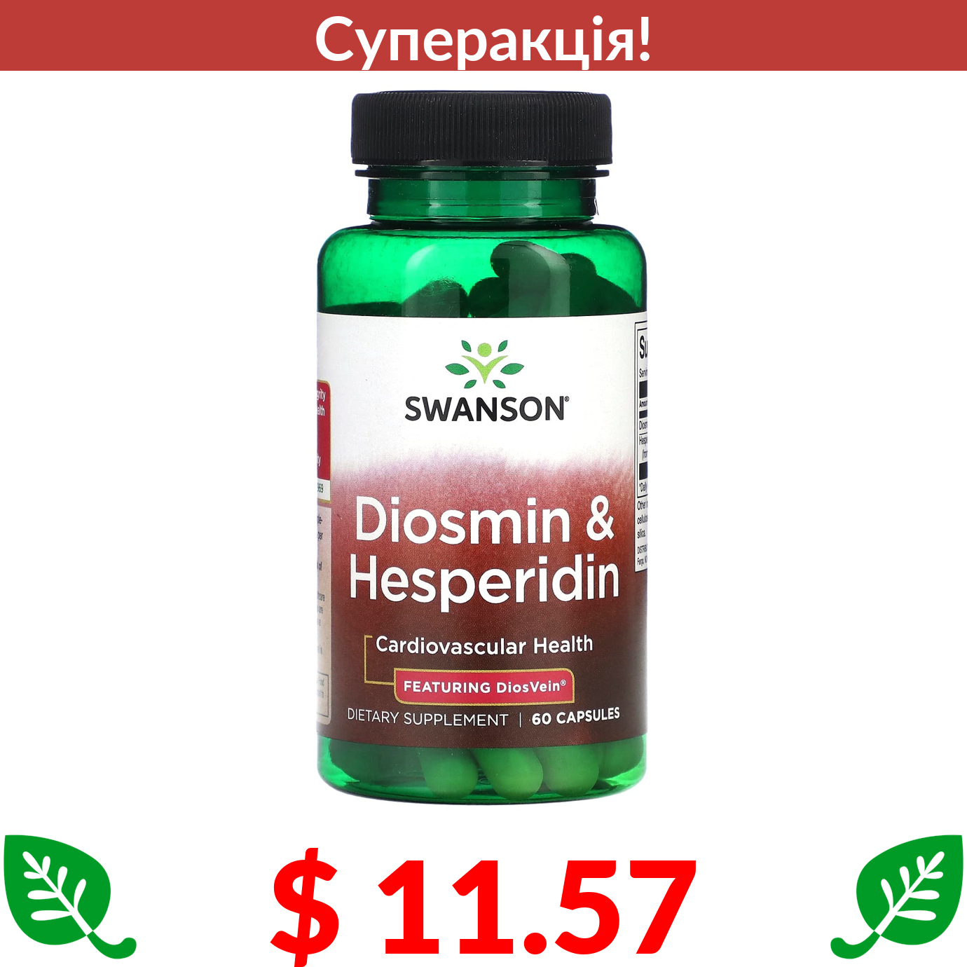 $ 11.57 Swanson, Diosmin & Hesperidin, 60 Capsules