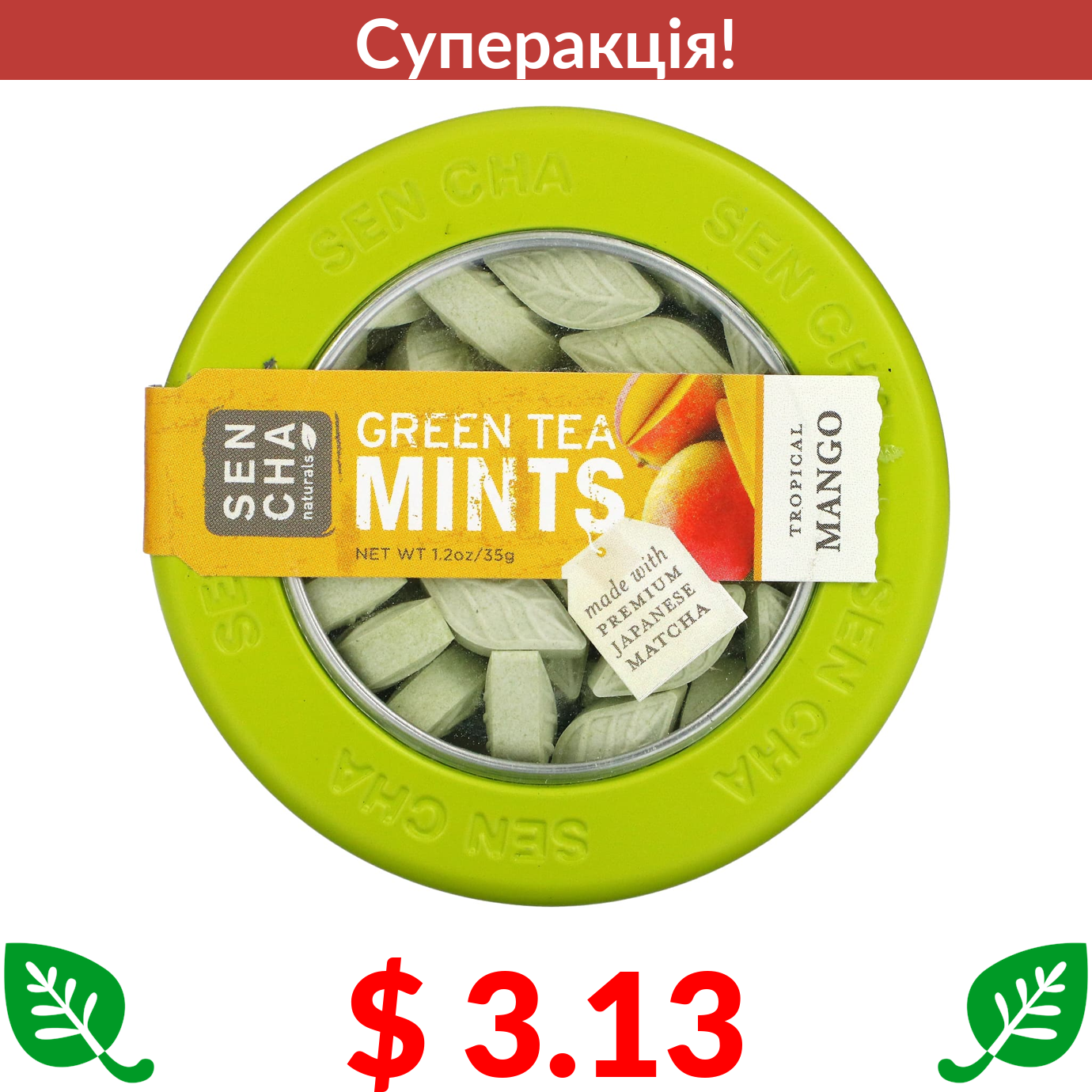$ 3.13 Sencha Naturals, м’ятні льодяники із зеленим чаєм, тропічне манго, 35 г (1,2 унції)
