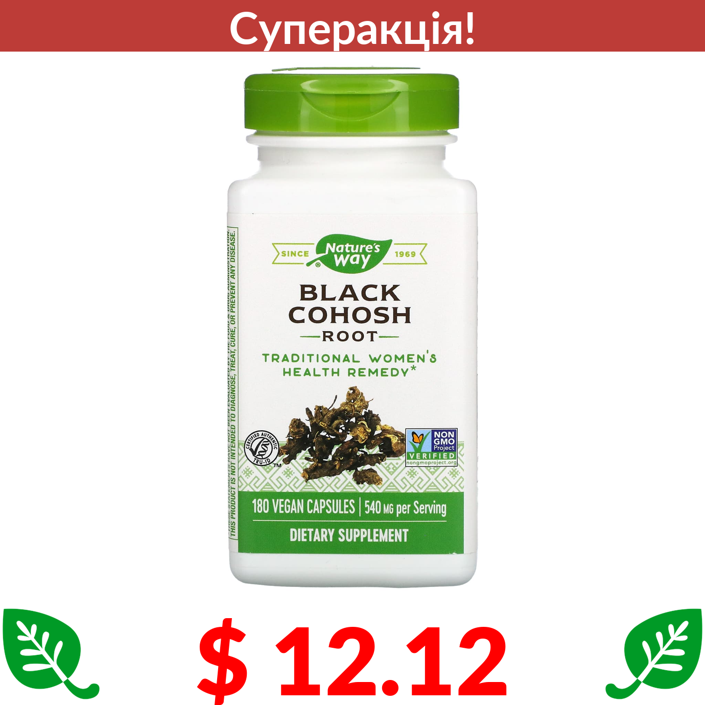 $ 12.12 Nature's Way, корінь воронця гроновидного, 540 мг, 180 вегетаріанських капсул